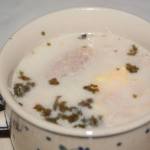 Podajemy z kiełbasą i kawałkami jajeczka.