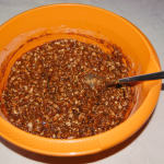 Całość mieszamy. Dodajemy jajko i rozpuszczoną margarynę.
