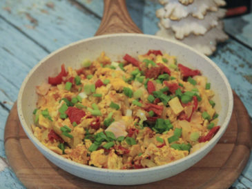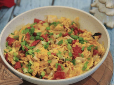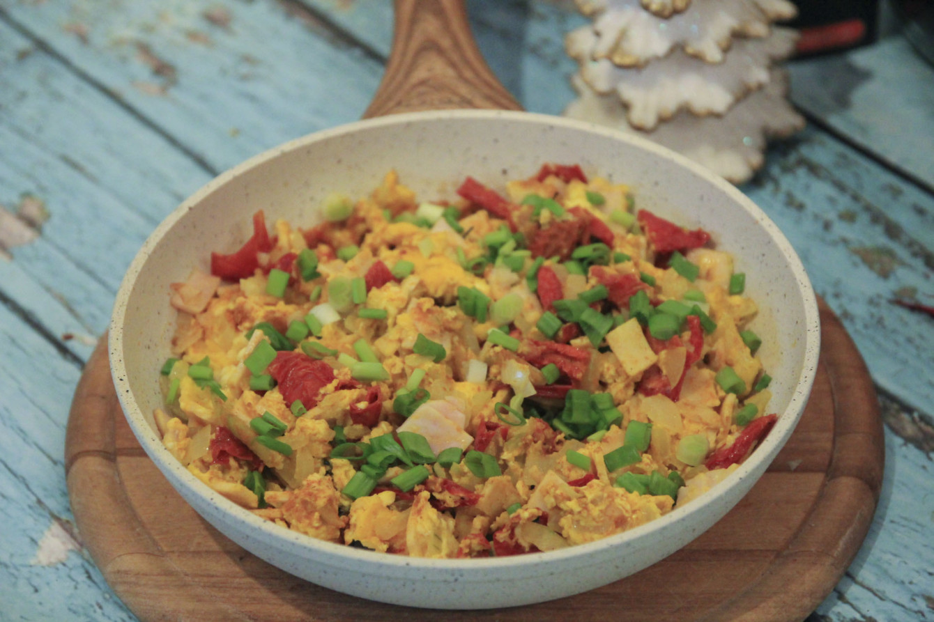 U nas ostatnio była jajecznica z suszonymi pomidorami które dodały jej kolorów w te ostatnio brzydkie i pochmurne dni. Jajecznica z suszonymi pomidorami powstała w kilka chwil i tyle samo czasu trzeba było poświęcić na jej zjedzenie. Po tak przygotowanym i zjedzonym śniadaniu będziemy mieć multum energii i chęci, by realizować cały plan dnia, a nawet tygodnia 😉