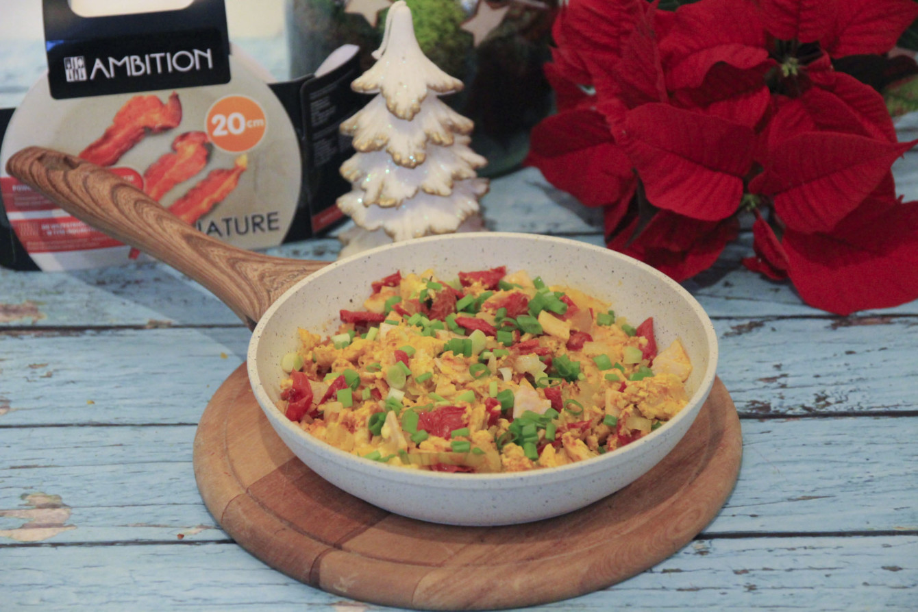 U nas ostatnio była jajecznica z suszonymi pomidorami które dodały jej kolorów w te ostatnio brzydkie i pochmurne dni. Jajecznica z suszonymi pomidorami powstała w kilka chwil i tyle samo czasu trzeba było poświęcić na jej zjedzenie. Po tak przygotowanym i zjedzonym śniadaniu będziemy mieć multum energii i chęci, by realizować cały plan dnia, a nawet tygodnia 😉
