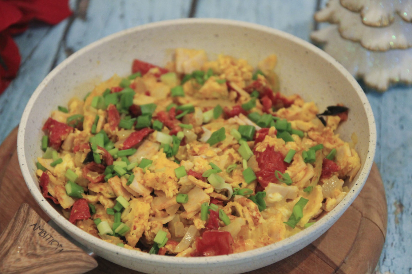 Warto zauważyć, że moja jajecznica z suszonymi pomidorami jest przygotowana bez soli, a tylko z dodatkiem kurkumy .