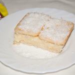 Wierzch ciasta posypujemy wiórkami kokosowymi.