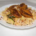 Podgotowaną mieszankę dokładamy do cukinii i pomidorów i podsmażamy.