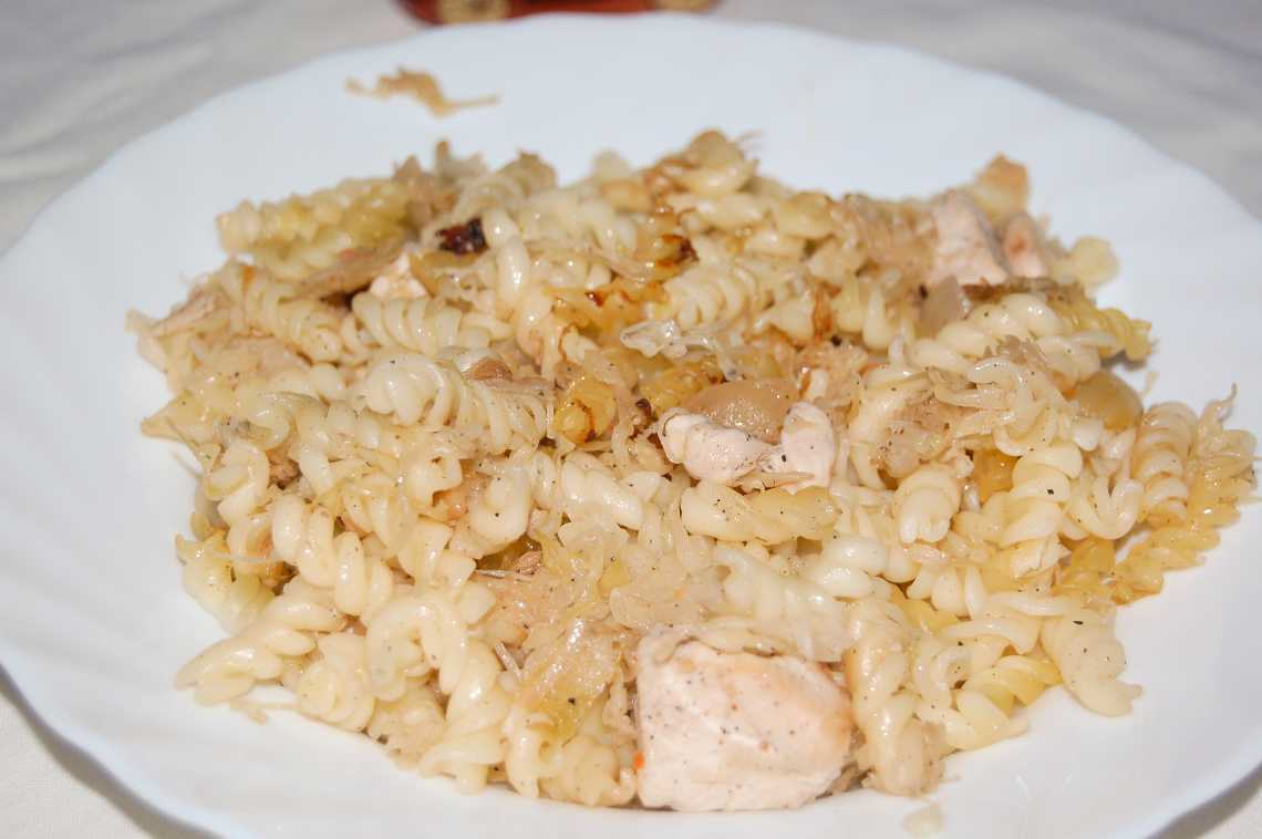 Makaron z kurczakiem i kapustą