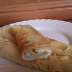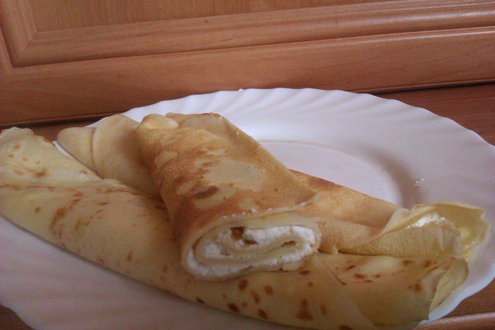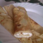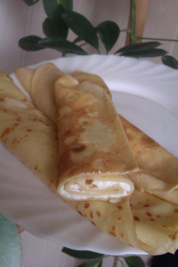 Gdy naleśniki będą usmażone i trochę przestudzone smarujemy je przygotowanym serem i zwijamy w rulony.