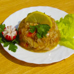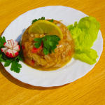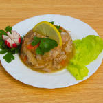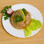 Gdy mięso będzie odchodzić od kości wyjmujemy je z garnka, obieramy.