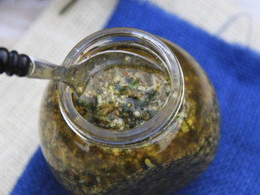 Uwielbiam pesto z bazylii! Ale równie często robię pesto ze szpinaku, pietruszki lub liści rzodkiewki. Szczególnie to ostatnie jest pyszne! 🙂