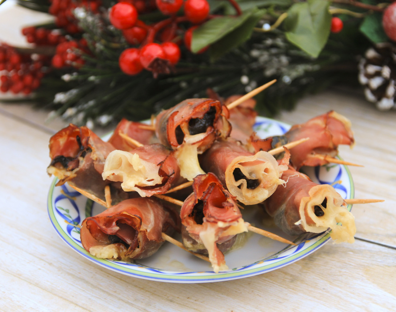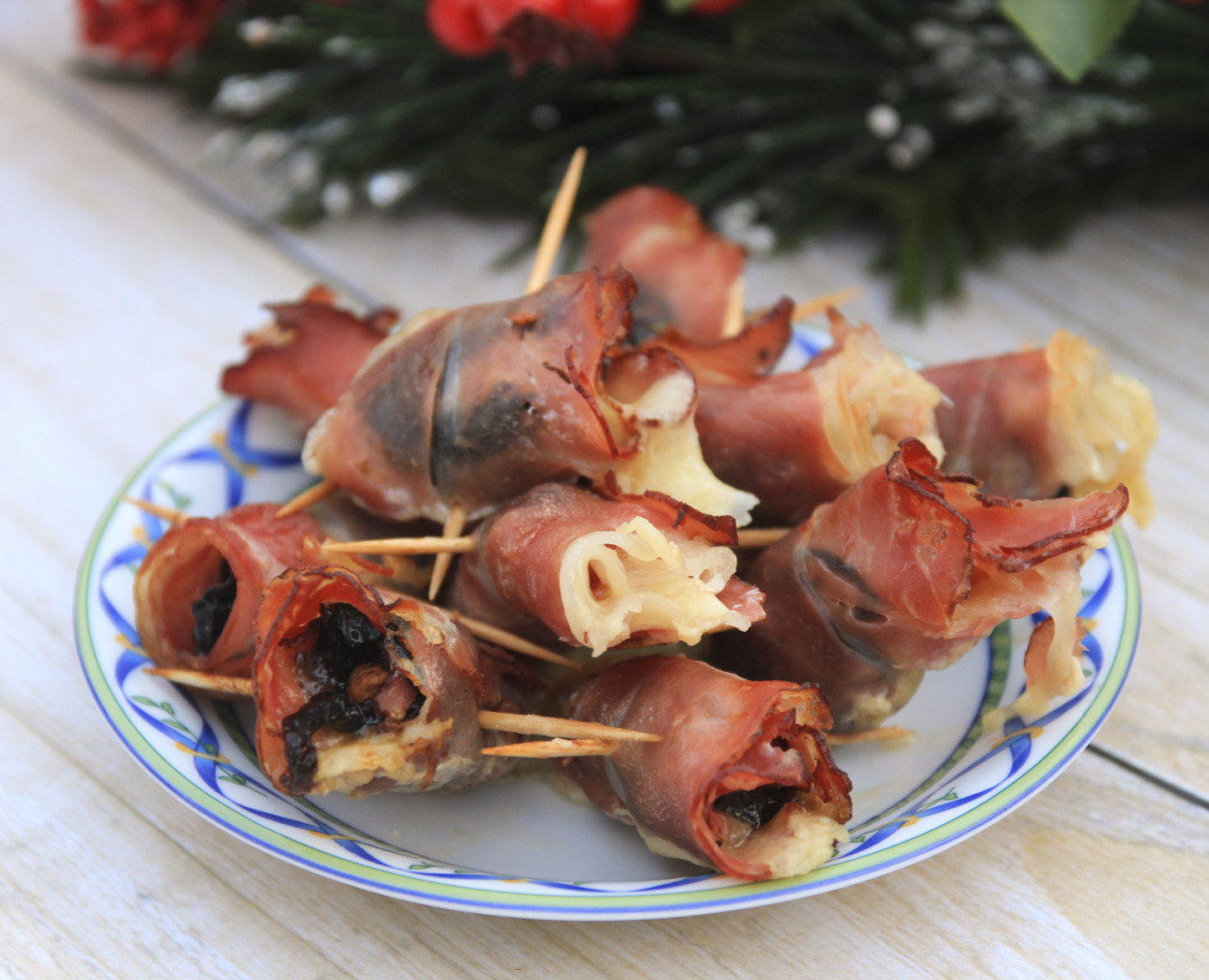 postanowiłam przygotować Roladki z szynki zapiekane z mozzarellą, śliwką i migdałem.