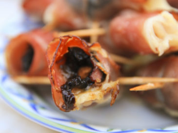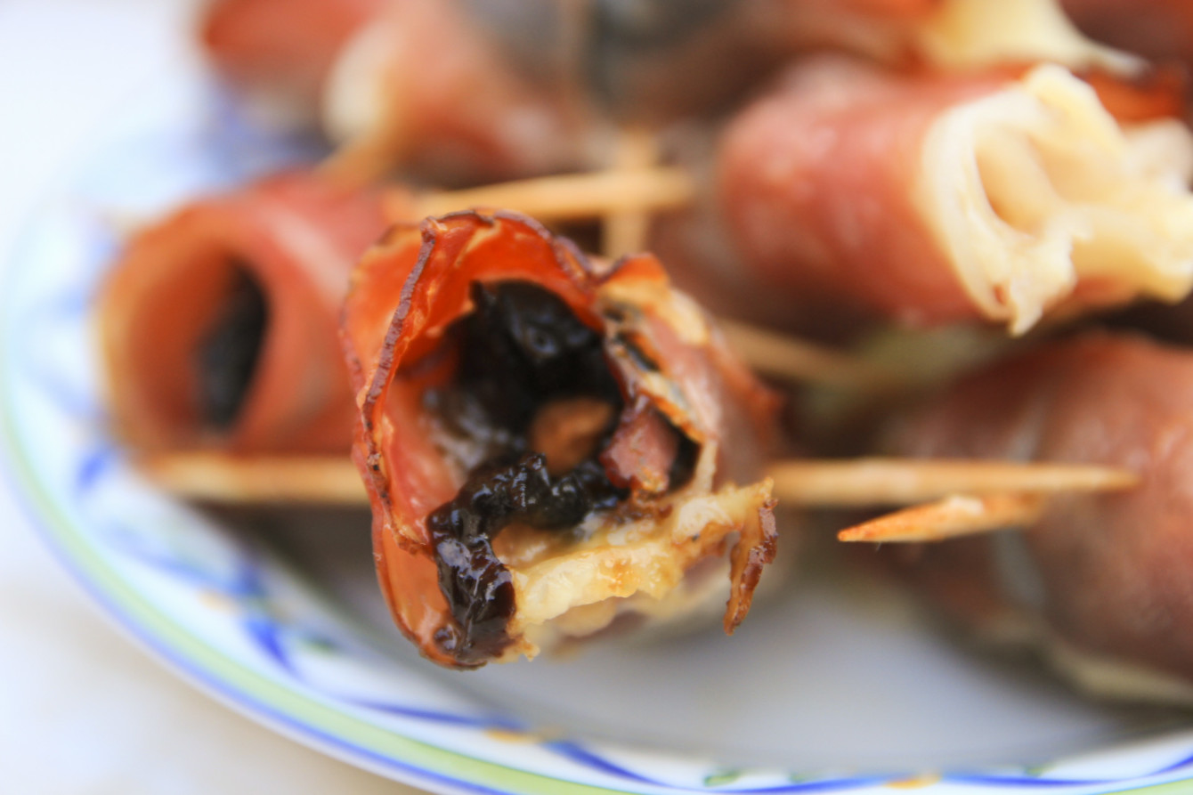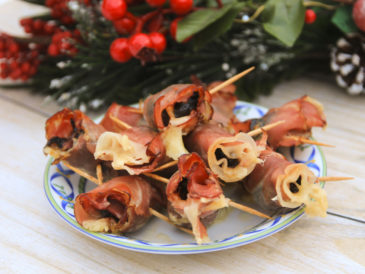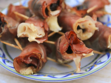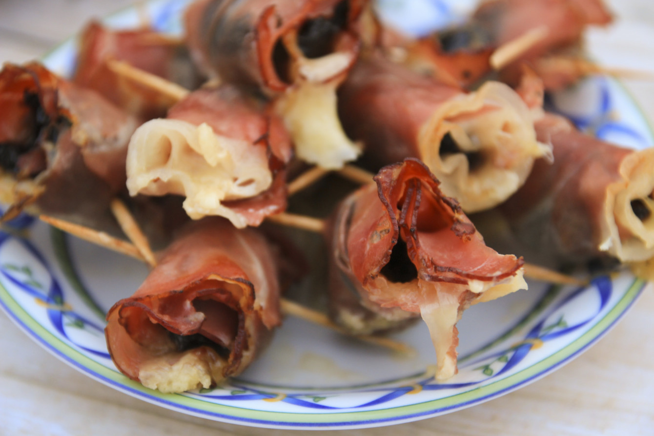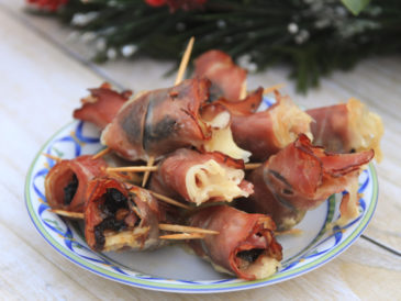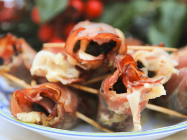 Do wykonania Roladek z szynki zapiekanej z mozzarellą, śliwką i migdałem zamiast szynki szwarcwaldzkiej możemy użyć boczku parzonego wędzonego w plastrach.