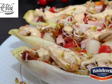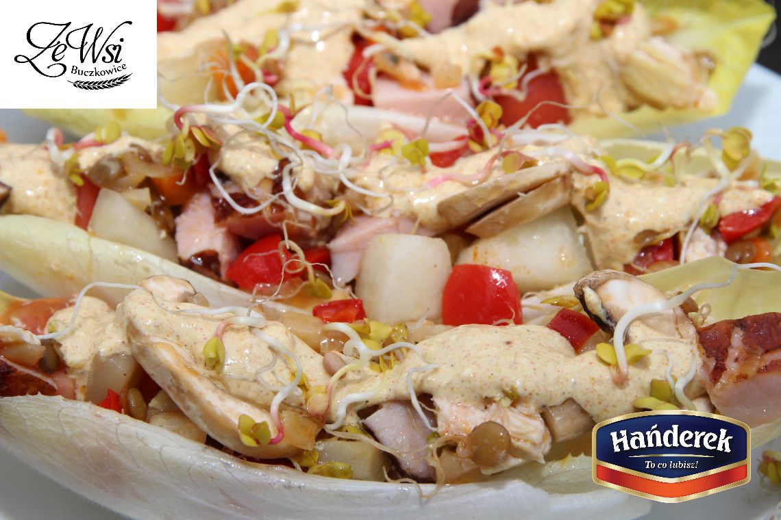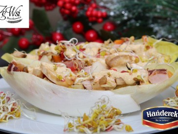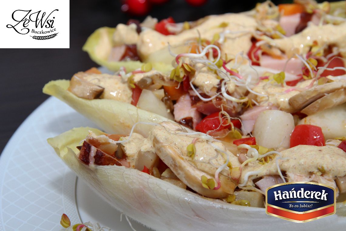 Sałatka jarzynowa z kiełkami podana w cykorii