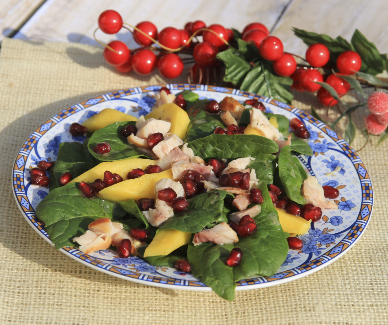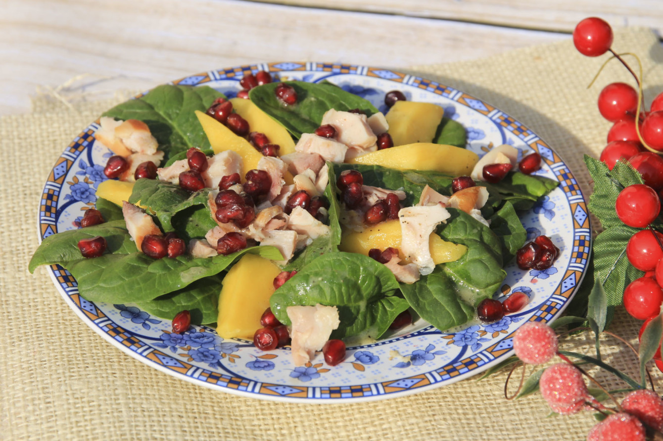 Sałatka z kurczakiem wędzonym, mango i granatem
