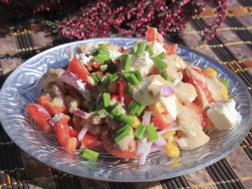 Smaczna i lekka, idealna na letnie dni, ale nie tylko 🙂 ja przygotowuję ją sobie często na drugie śniadanie w pracy. Nie zajmuje dużo czasu, a jest bardzo smaczna. Nawet moje córki przekonały się do niej, choć niechętnie sięgały po sałatki. Zdecydowanie polecam przepis. Można też dodać do niej inne warzywa i będzie równie smaczna 🙂