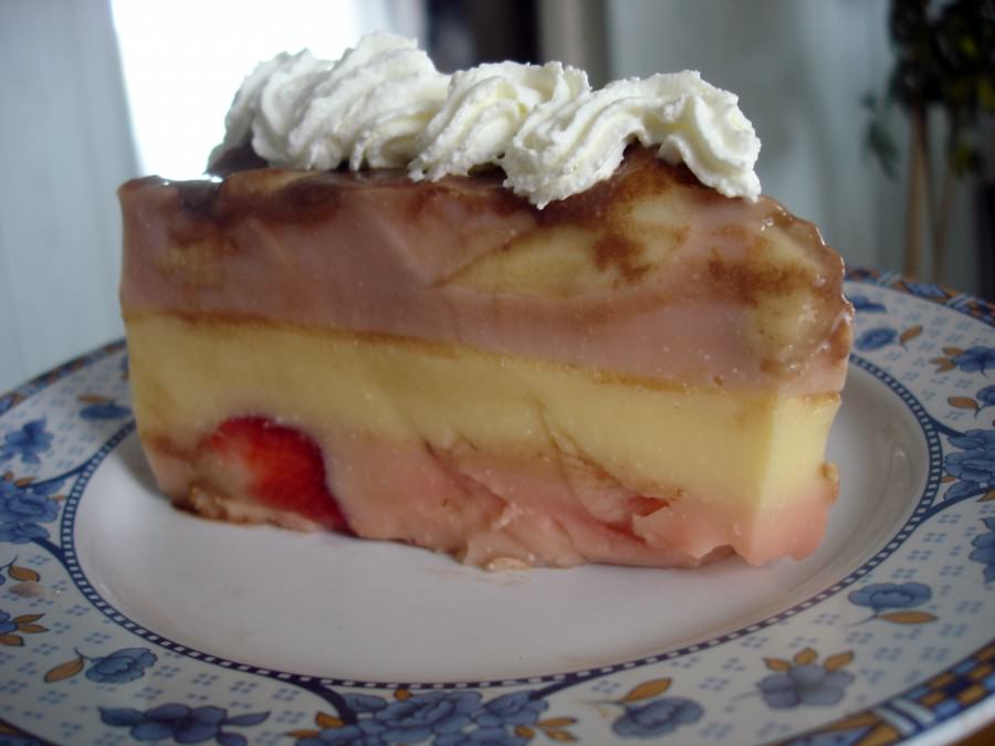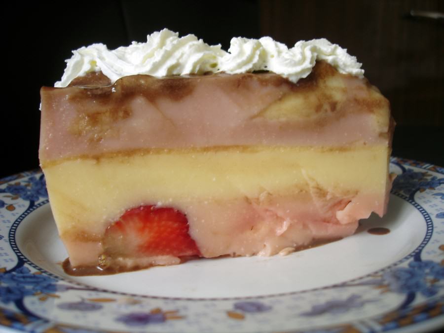 Na samo dno wlewamy masę truskawkową , dodajemy pokrojone truskawki i wstawiamy do stężenia w lodówce.