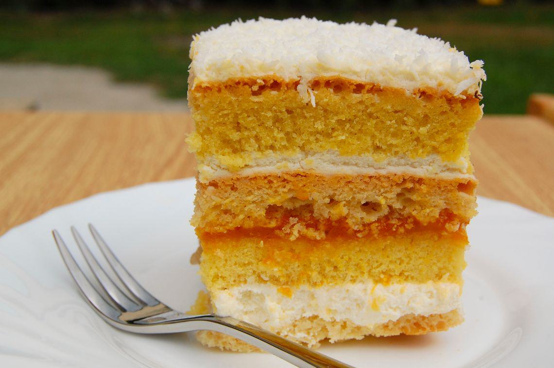 Wykładamy kolejny placek na nim pastę pomarańczową.