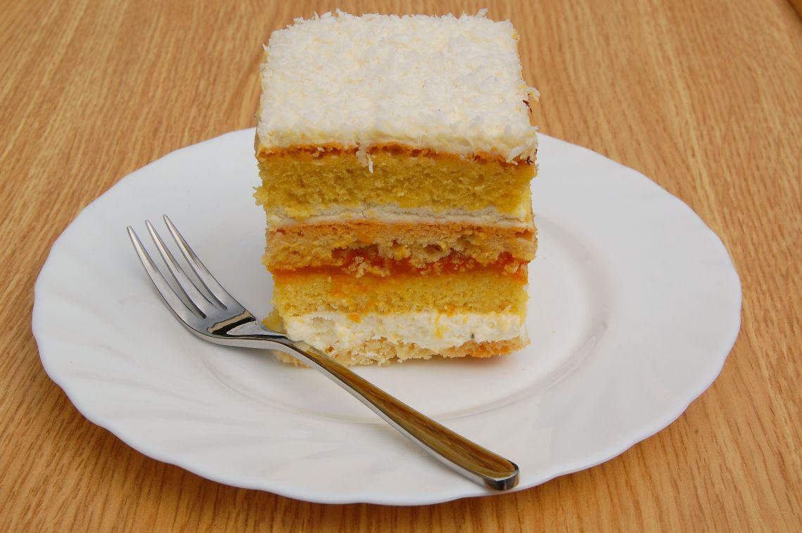Po upieczeniu ciasto studzimy i kroimy w poprzek dwa razy